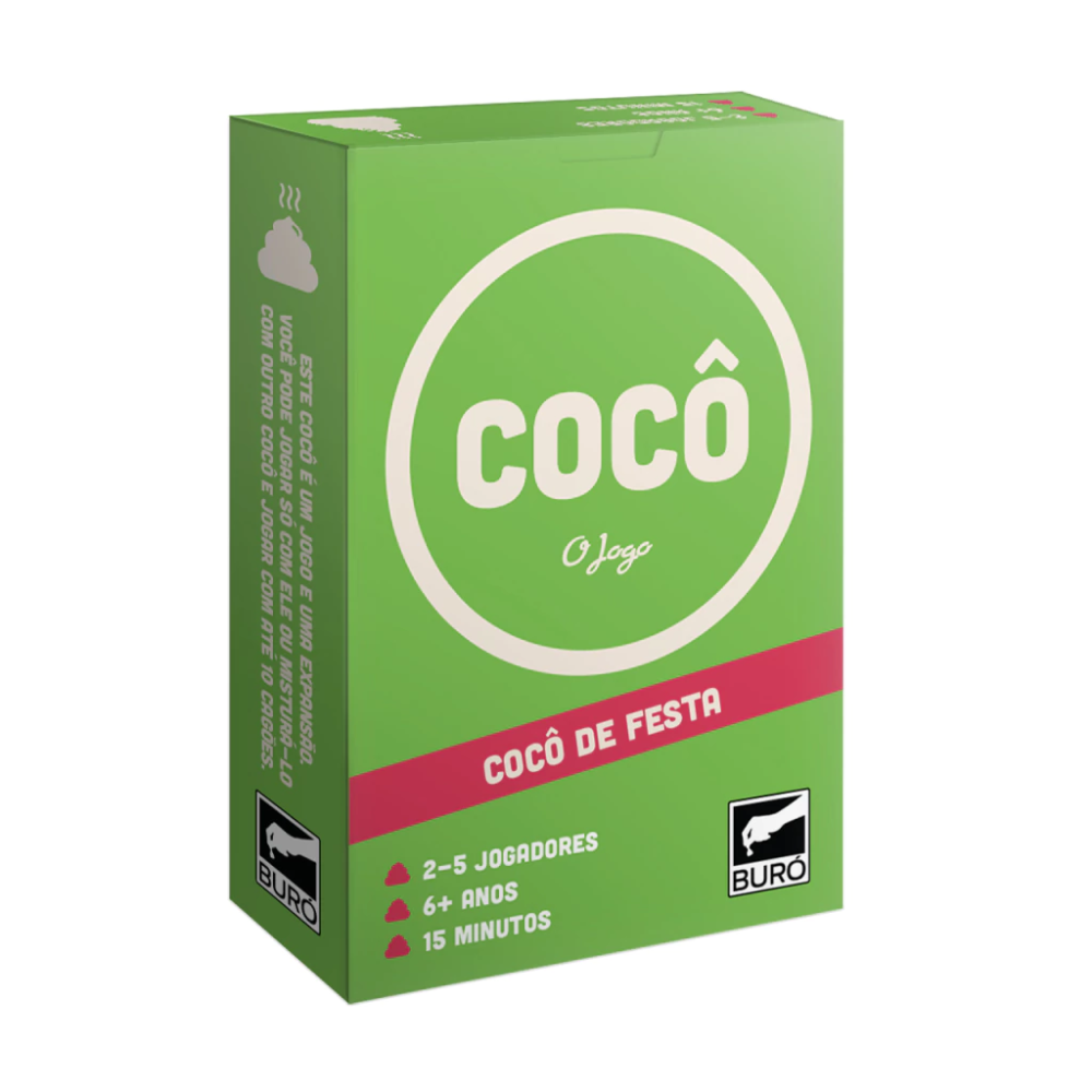 Cocô de Festa é um jogo de cartas rápido, divertido e perfeito para animar qualquer encontro. Com partidas curtas e cheias de risadas, os jogadores precisam se livrar das cartas o mais rápido possível, combinando números, animais e ações ao longo da partida.